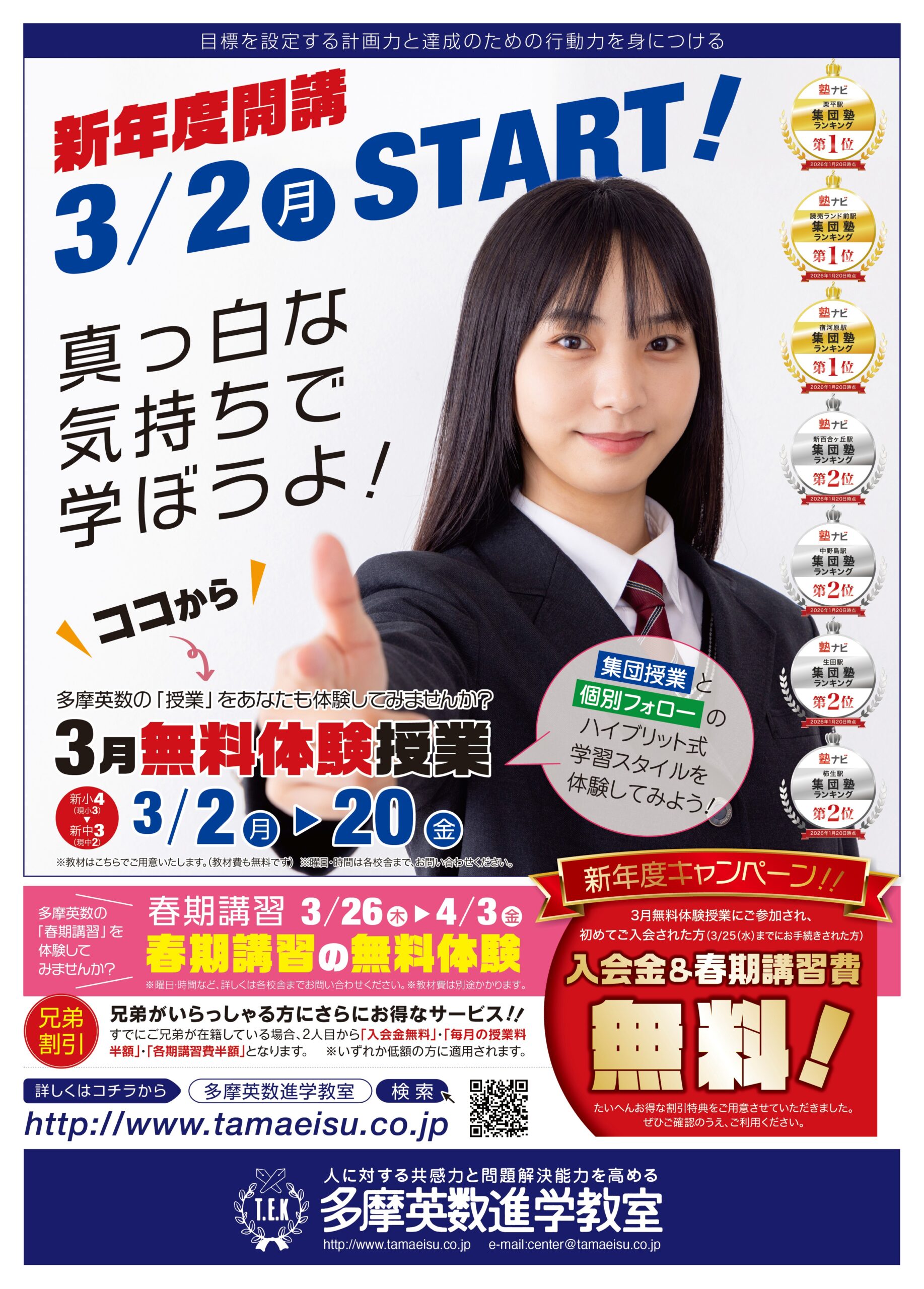 なお、3月無料体験にご参加され、春期講習から当塾にご入会いただきますと、