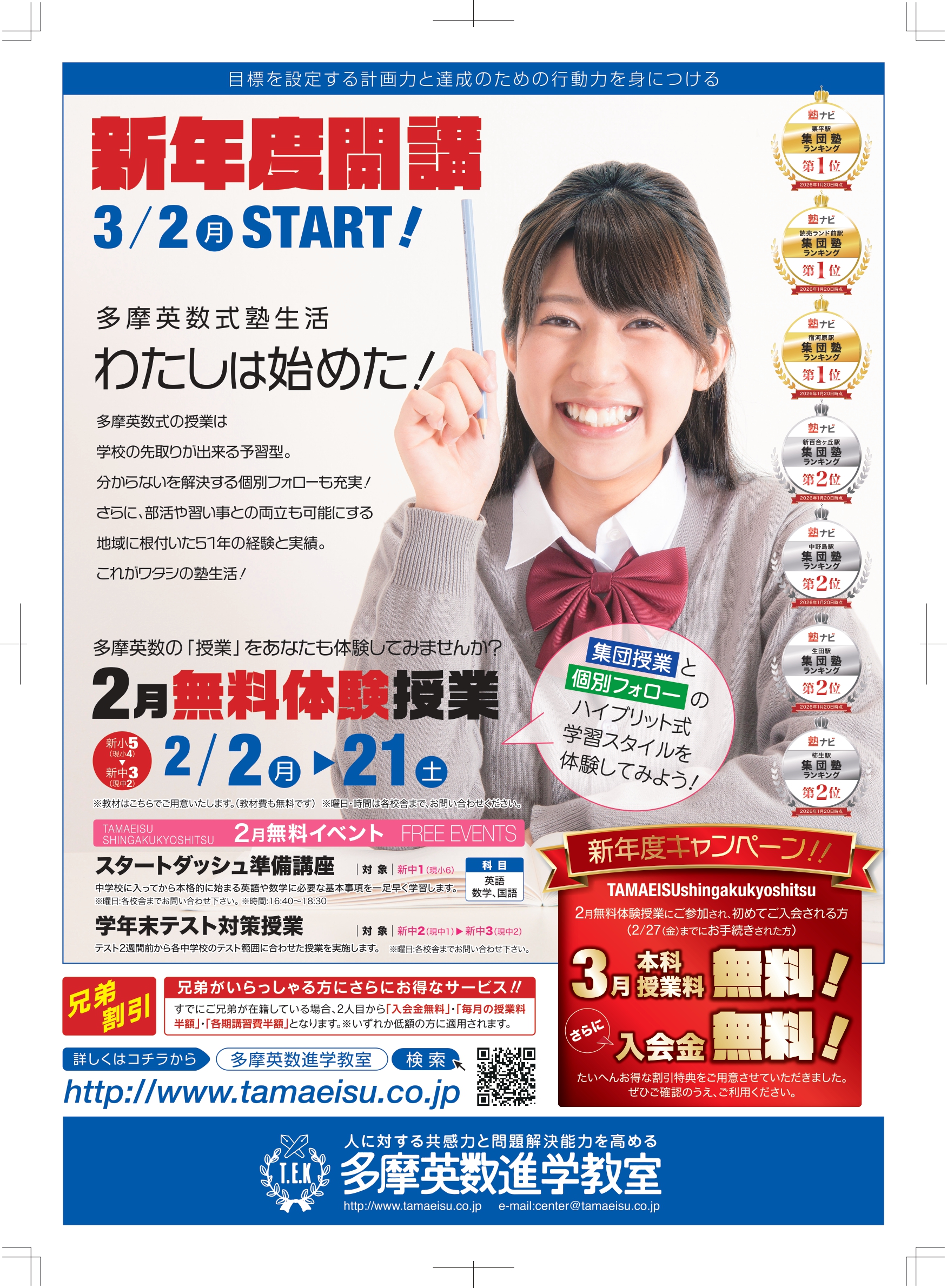 なお、2月無料体験にご参加され、3月から当塾にご入会いただきますと、